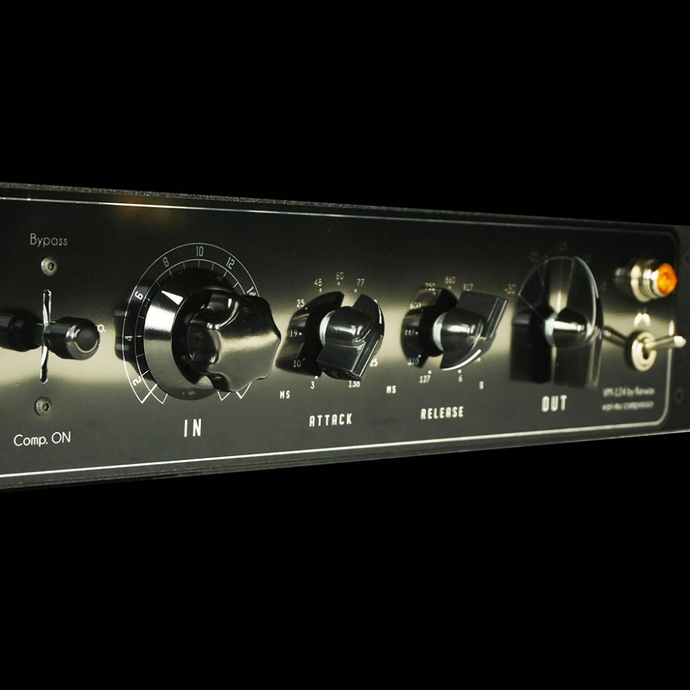 Perfect across the full audio spectrum, the VM-124 shines on vocals, bass, acoustic instruments, and more. Its creamy, harmonically rich compression adds warmth and depth, while stepped attack, release, and output controls allow precise, repeatable settings. Whether you want smooth leveling, subtle glue, or bold character, the VM-124 delivers timeless analog dynamics with unmistakable tube flavor.