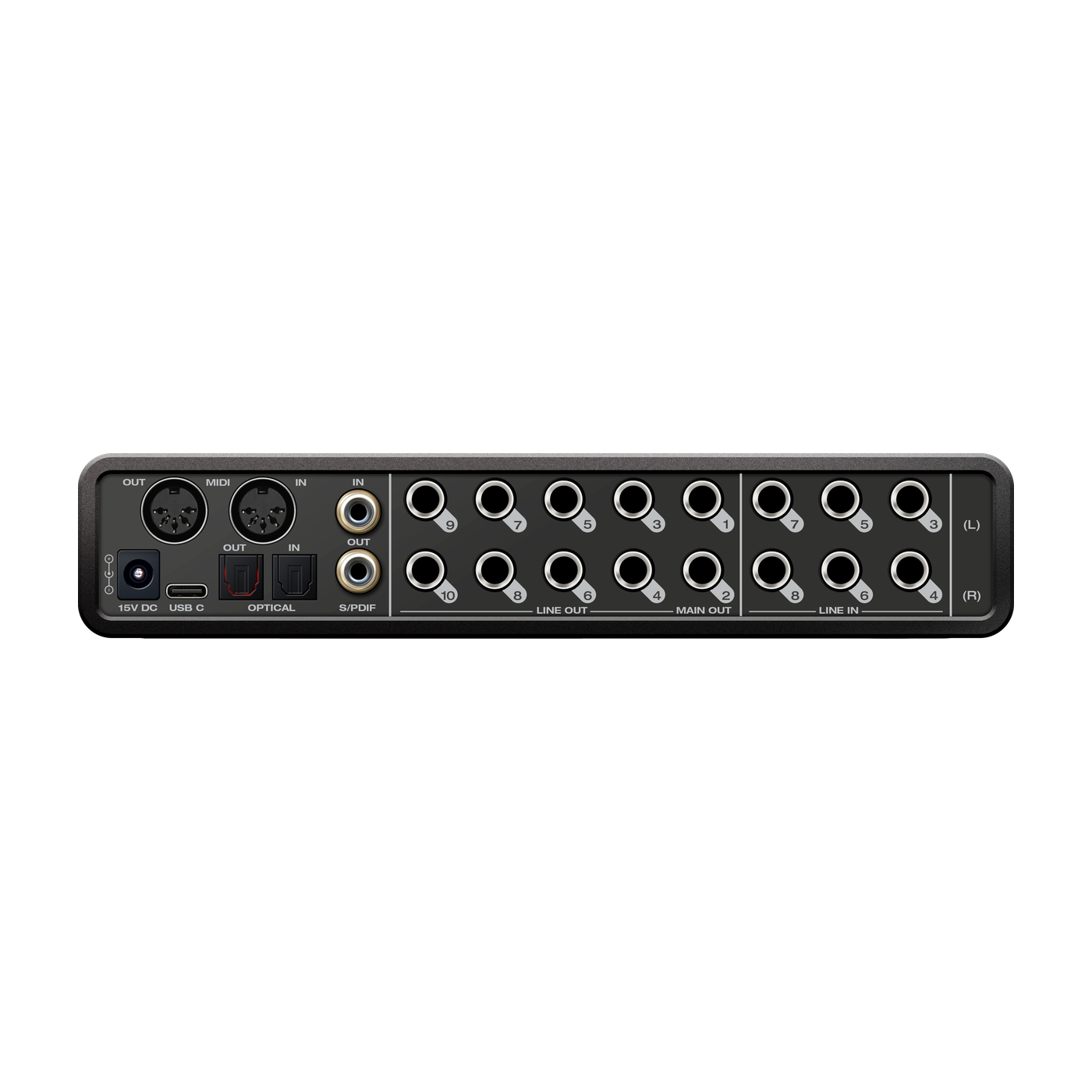 As an interface or mixer, the UltraLite-mk5 provides 18 inputs and 22 outputs, for a total of 40 simultaneous, independent I/O channels. You get 2 mic/line/instrument inputs, 6 line inputs, 10 line outputs, headphone out and 8-channel optical I/O. The optical ports alternatively support stereo TOSLink (optical S/PDIF).